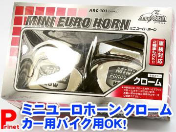 車検対応、二輪車もOK!ミニユーロホーン クローム ARC-101
